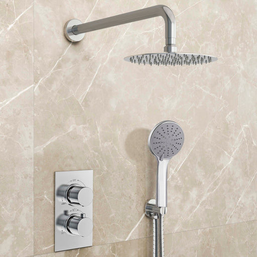 View full detailsSeller's Introduction Thermostatic Brass Faucet: Overhead&Handheld shower head: 9-inch round ultra-thin overhead shower, rubber nozzle, easy t...