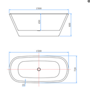 AICA Bathroom Freestanding Double Ended Bathtub 1500x720mm